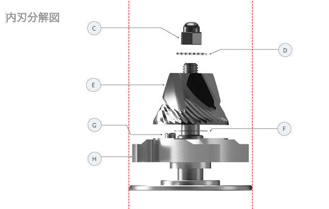0点が合わない場合には、スピンドルと内刃が、2本のピンでしっかり噛み合わさっているかご確認ください